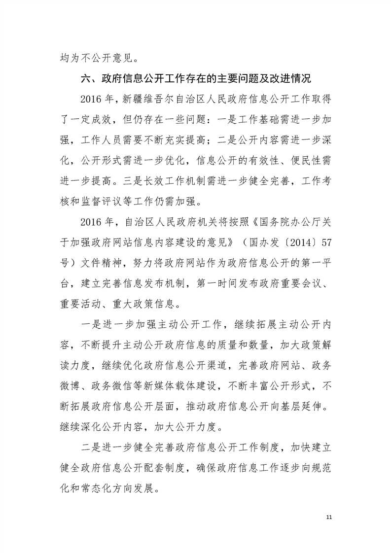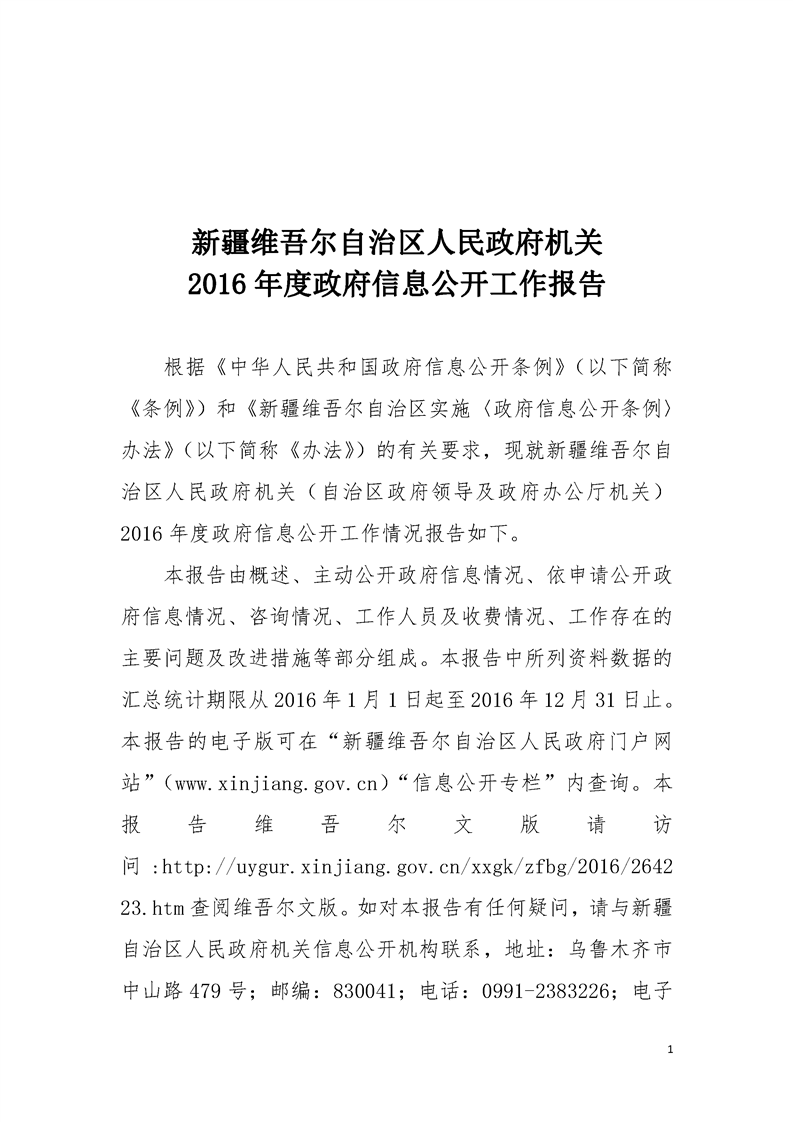 新疆维吾尔自治区人民政府机关2016年度政府信息公开工作报告