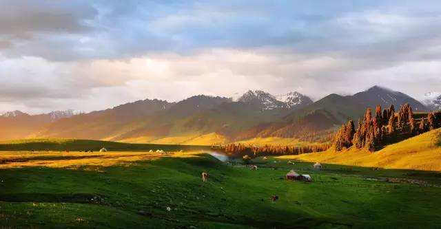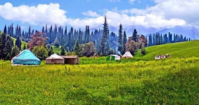 ????近处的草原、山上的松林、远处的雪山,构成了一幅天然的三重合唱。放眼望去,星星点点的毡房、袅袅升腾的炊烟,形成了哈萨克生活的日常图景。几千年来,这片壮阔的土地上还曾上演了无数悲壮、哀婉的故事。