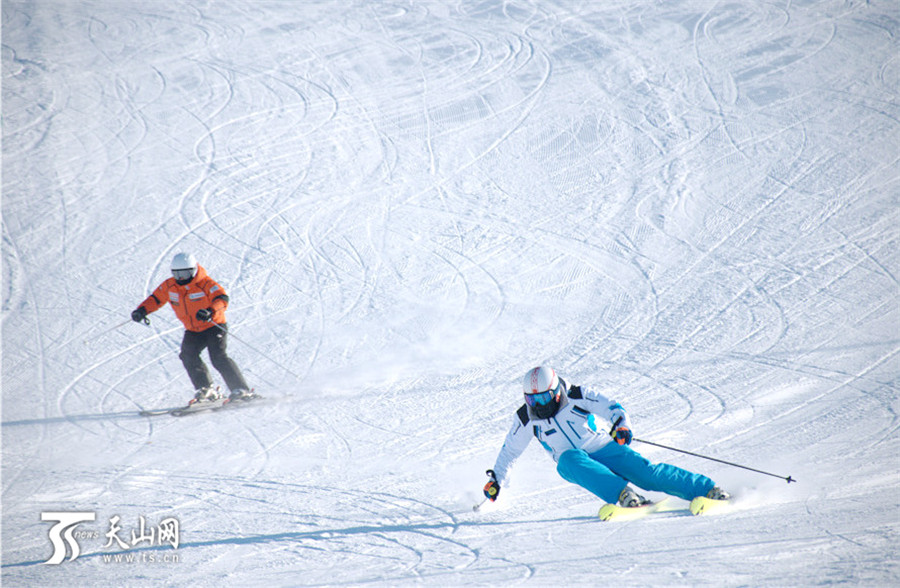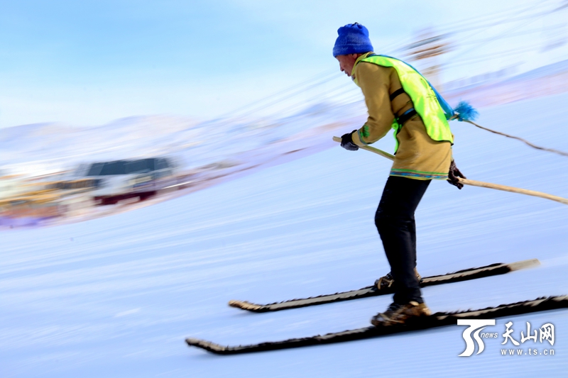当天,在将军山滑雪场,-28℃的室外温度也无法阻挡纷至沓来的中外游客的满满热情。具有20年滑雪经验的吉林滑雪发烧友王飞此次是和朋友专程来阿勒泰参加滑雪比赛和冰雪节活动。他说:“阿勒泰是很多滑雪发烧友最向往的地方。此次来阿勒泰,深入了解了古老毛皮滑雪的历史,有一种‘寻根’的感觉,真是来对地方了!”