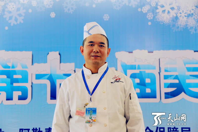 1月17日,厨师马国华在阿勒泰市第十一届美食大赛现场。