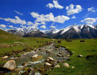 新疆远离海洋,气候干燥少雨,属于典型的温带大陆型干旱气候,年均天然降水量仅有171毫米。境内山脉融雪形成大小河流570多条,多年平均地表水年径流量879亿立方米;平原区地下水可开采量153亿立方米;冰川储量2.13万亿立方米,占全国的50%,有"固体水库"之称。新疆土地资源丰富,全区农林牧可直接利用土地面积10亿亩,占全国农林牧宜用土地面积的十分之一以上。